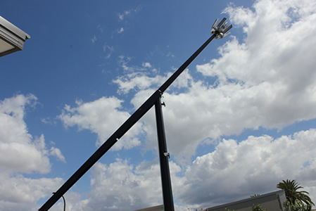 The radios were Ubiquiti Rocket Titanium devices using an adjustable beamwidth sector antenna on a 6 gang pole mount installed on a 12m hinged swing pole for easy access for maintenance. Transtector lightning protection was used at the head and comms room entry point and RF Armor was used on all radios to lower the noise in the system and improve throughput. The main pole and comms room were connected to a communications grade earthing grid for protection and improved noise immunity. All radio and network equipment was preconfigured, labelled, tested and documented by Active Online to be installed by Cloudfire.