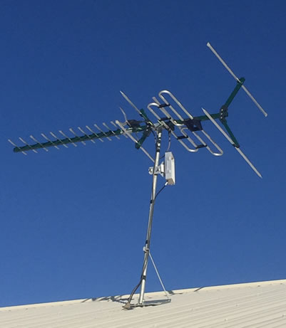 The radio equipment was mounted on to the tv antenna mast and oriented towards the main pole. RF Armor was used to reduce the noise floor and improve the system performance.