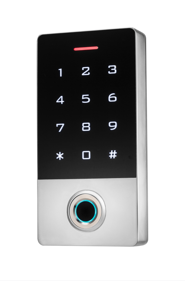 This elegant and vandal resistant unit is a single door / gate multifunction standalone access controller with Wiegand output, touch keypad, 13.56MHz MiFare card reader, fingerprint reader, and Tuya WiFi access. Ideal for residential properties or business where a stylish vandal resistant all weather access control system is required.