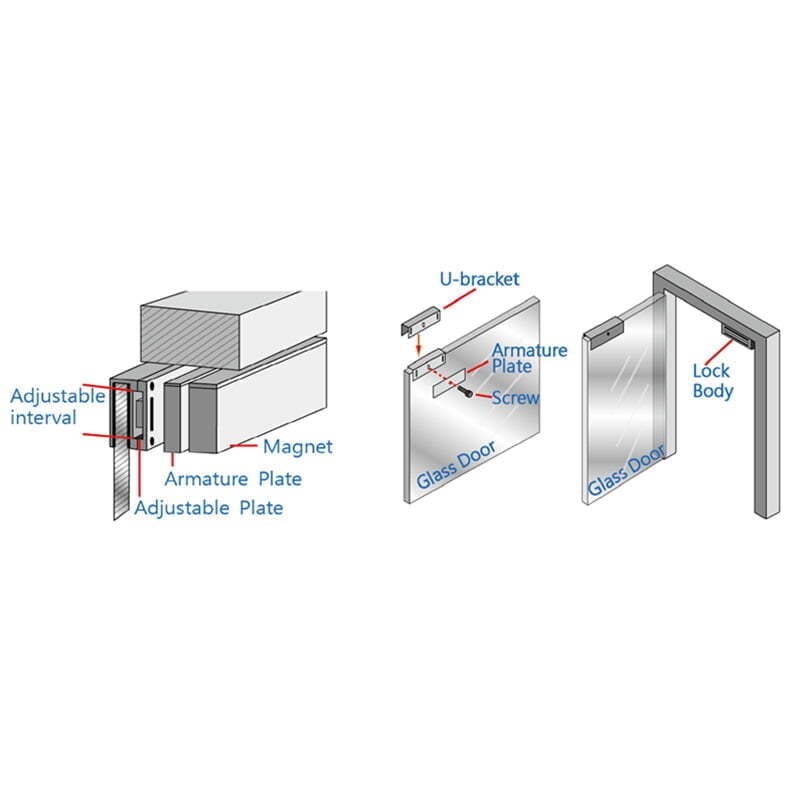 Product Features: • Built for 600LBS & 1200LBS. Maglocks. • Material: Aluminum. • Suitable for 9-15mm thick glass doors. • Adjustable plate to match the position of the armature plate.