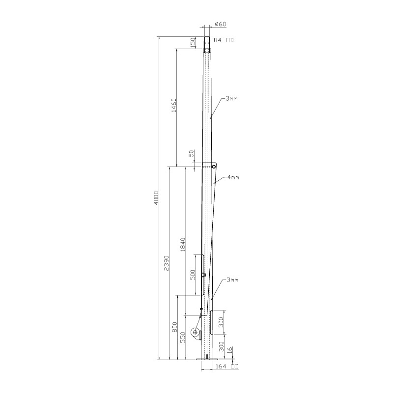 4m Hinged Pole+Bolt Drawing & Dimensions (PDF)
