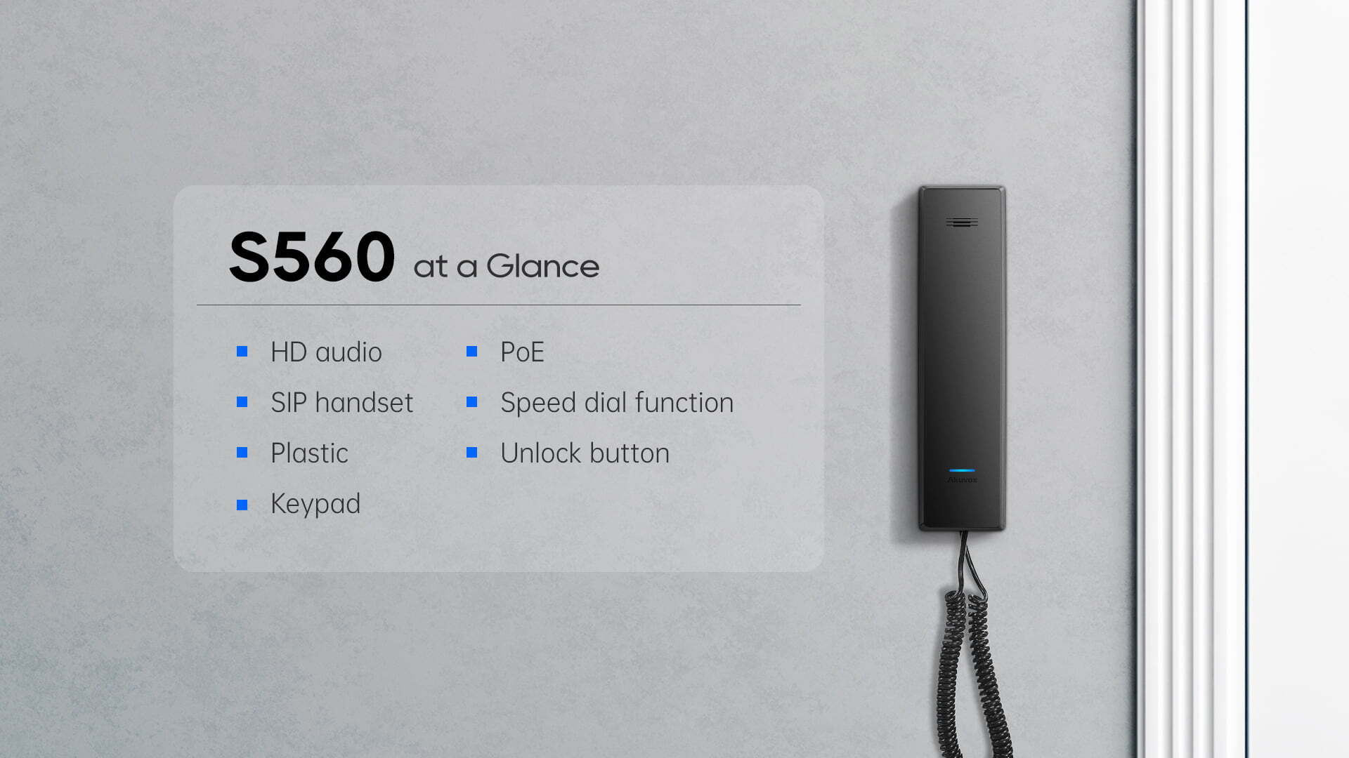 Akuvox S560 Audio Intercom Answering Unit is a SIP-based handset intercom. It supports basic intercom functions such as intercom calling and door unlocking and can be installed on a wall or placed on a desktop. With a compact and minimalist design it is an ideal choice for smaller areas and serves perfectly as an extension unit.