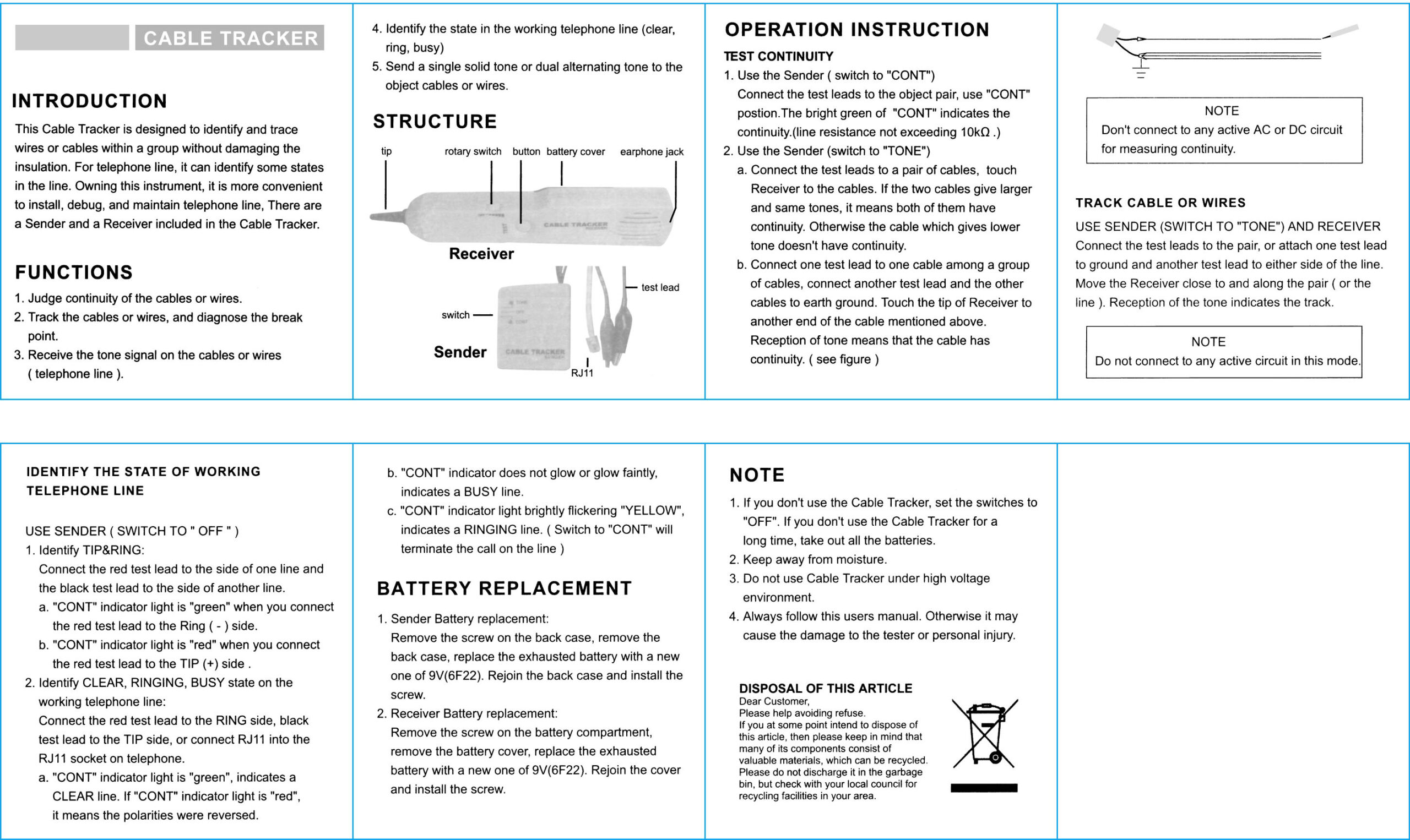Tone Generator is great tool for locating and Identifying cable pairs or individual conductors. This is also function as a continuity and polarity tester. Test results displayed on the three-colored led.